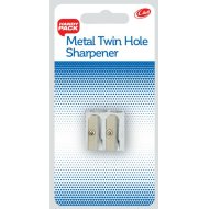 Traditional wedged shape metal sharpener with 2 different sized holes to suit a variety of pencil sizes.