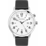 Sekonda Easy Reader Ladies 36mm Quartz Watch in White with Analogue Day/Date Display, and Black Leather Strap