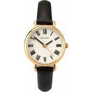 Sekonda Classic Ladies 25mm Evans Watch in Gold with Black Leather Strap & White Dial