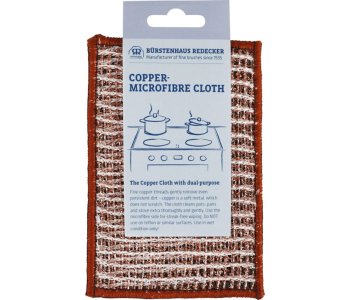 Fine copper-threads gently remove even persistent dirt - copper is a soft metal, which does not scratch. The cloth cleans pots, pans and stove extra thoroughly and gently. Use the microfibre side for streak-free wiping.