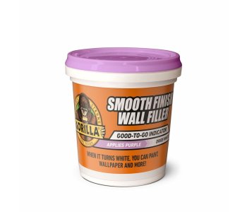 APPLICATION - Apply with filling knife by pressing into hole. Product will be purple and change to white as it dries. Once white, product can be wallpapered, painted or sanded, if desired. Note: As the product is a lightweight filler, it is not suitable for drilling.