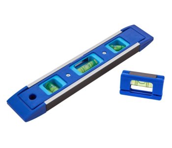 BlueSpot Magnetic Torpedo Level with a sturdy plastic body and aluminium frame for increased durability. Ideal for small building projects. Magnetic base allows for hands-free operation. Features three spirit level vials set at horizontal, vertical and 45ø angles.
