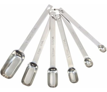 To bake like a professional, you need an accurate way to measure ingredients. This set includes six spoon measures, ranging from ⅛ teaspoon to one tablespoon, so it's great for tackling tricky recipes that call for precise volume measurements. The spoons nest together for easy storage, and include a keychain-style loop to keep them tidy and together. The long rectangular design makes it easy to reach into spice pots and other awkward spaces.