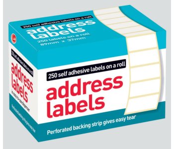 Self Adhesive Address Labels89mm x 37mmRoll of 250 LabelsPerforated Backing Strip for Easy Tear